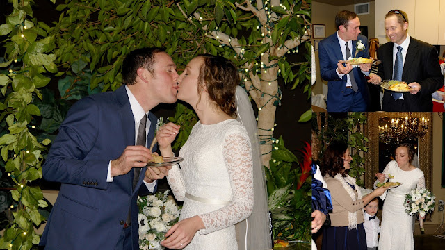 Charlie was so surprised. He had been looking at that big beautiful wedding cake and telling me how much he wished he could have some. He didn't say anything when Jessica gave it to him. Just looked smiling at her and reached around the cake to squeeze her hands. Then he gave her a big hug.