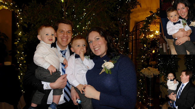Charlie playing under the tables with Aunt Liz's animal light key chain thing. Uncle Alex chatting with Jane. Grant looking skeptical at the camera. Grandpa Joe (Keith's dad) snuggling a sleeping Hannah. He has this magical ability to make babies fall asleep in his arms. Sarah was very grateful for his skills and willingness to help during the reception.